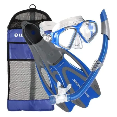 This great set from U.S. Divers and includes a semi-dry snorkel, vented fins and a durable, three-way adjustable mask.